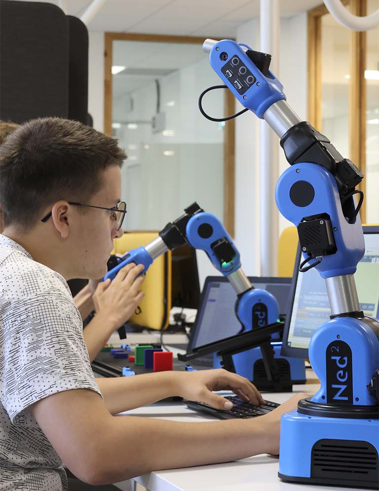 For professional activities, Ned cobots automate manufacturing, quality control and packaging processes. For teachers, they make it easy to train the engineers of tomorrow, with industrial quality robots.