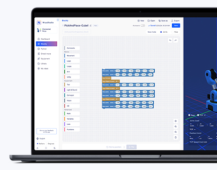Programmieren Sie mit Niryo Studio, trainieren Sie auf der Niryo Academy Plattform und greifen Sie auf alle Ressourcen auf unserer Dokumentations-Website zu.