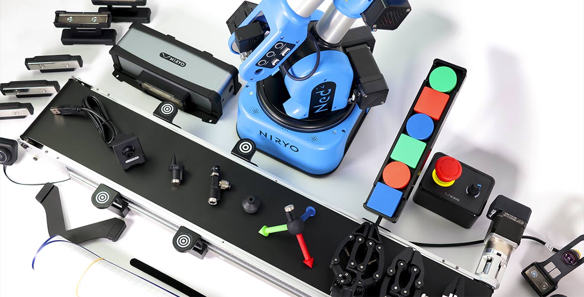 Our NiryoAcademy platform gives you access to educational content adapted to different teaching levels: introduction to programming, automation, AI, ROS2, etc.
