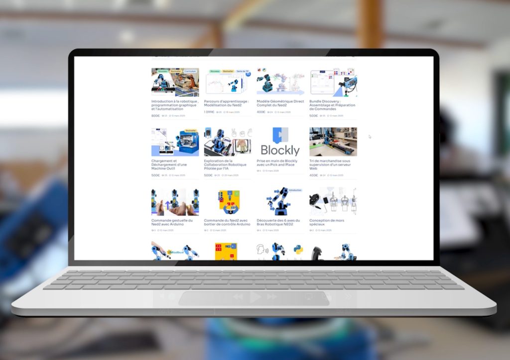 NiryoAcademy se présente comme une solution numérique innovante, conçue pour répondre aux besoins concrets des enseignants et des étudiants dans le domaine de la robotique et au-delà. Cette plateforme offre un éventail de fonctionnalités pensées pour faciliter l’intégration des robots pour apprentissage et la programmation dans les écoles et les cours, tout en favorisant le développement professionnel des éducateurs.